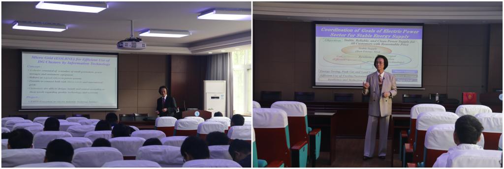 第一场主题:Micro Grid and Smart Grid for Reliable Power Supply。主讲人横山隆一教授。重点讲授微电网与智能电网的结构、国内外典型的微电网与智能电网的工程项目、储能系统的特点及其在微电网与智能电网中的重要作用。第二场主题:Power System Stabilization for Long Term Dynamics in Multi-Area Interconnection based on Robust Control。主讲人横山隆一教授。重点讲授多区域互联的集群微电网基本结构、电力自由化条件下多区域互联电力系统的长期动态特性、基于H∞的电力系统稳定性控制方法。第三场主题:International Power Grid Connection and its Technical Issues。主讲人横山隆一教授。重点讲授超级电网跨区域电力转移的概念和背景、亚洲国家跨区域电力转移的建议和倡议、国际电网与亚洲电网的电网互联现状。第四场主题:Geographic Information of Transmission Planning for Wind Power。主讲人中西要祐教授。重点讲授考虑地理、经济和环境成本曲面下的风电场选址方法和输电线路随机优化设计方法。第五场主题:Load Frequency Control in Power System with Renewable Energy。主讲人中西要祐教授。重点讲授高间歇性可再生能源渗透电力系统的随机潮流分析方法与负荷频率控制方法。第六场主题:Energy Management System for Renewable Energy。主讲人中西要祐教授。重点讲授富士电机在北九州的智能社区示范项目中的综合能源管理系统、动态定价和激励方案。