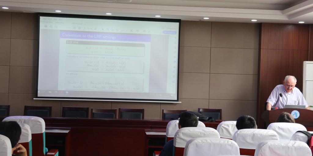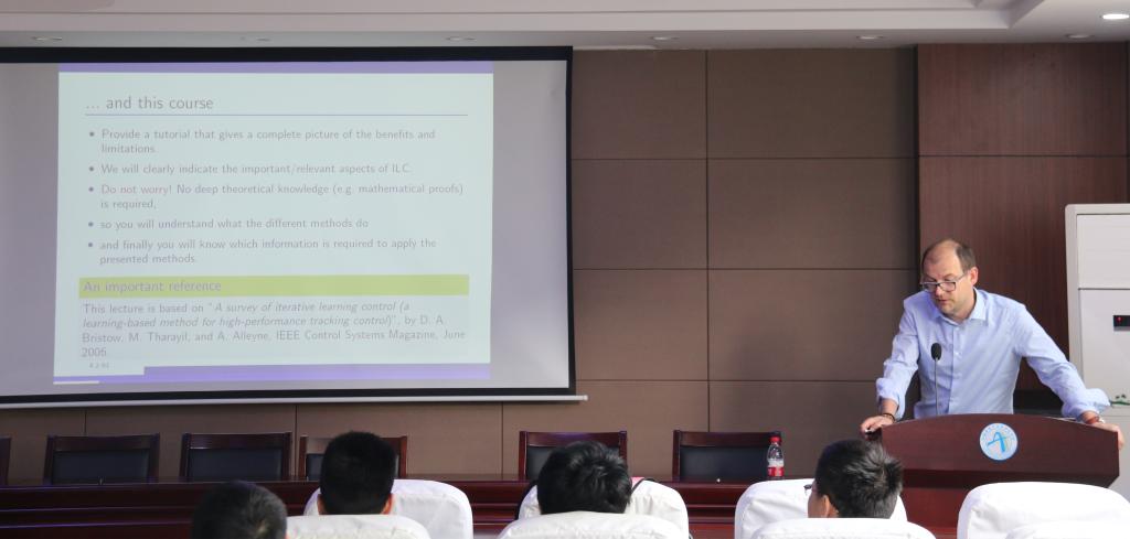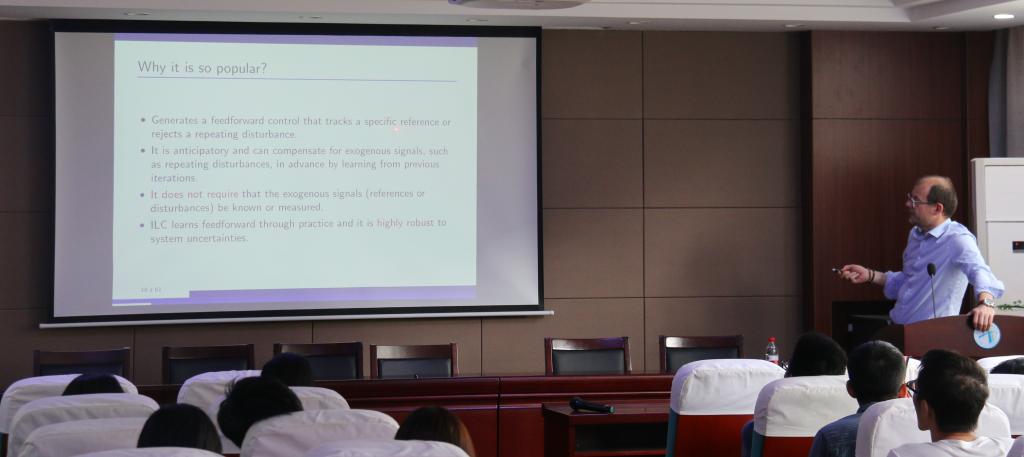 Wojciech Paszke副教授主讲了前三次课。“An Introduction to Iterative Learning Control (ILC)”讲授迭代学习控制原理、时域主导和频域主导的迭代学习控制设计方法;“Analysis, performance and robustness”讲授迭代学习控制中主要的分析和合成方法,并展示了不同方法的优缺点;“Standard design procedures for ILC schemes”讲授迭代学习控制不同的设计方法以及联系。